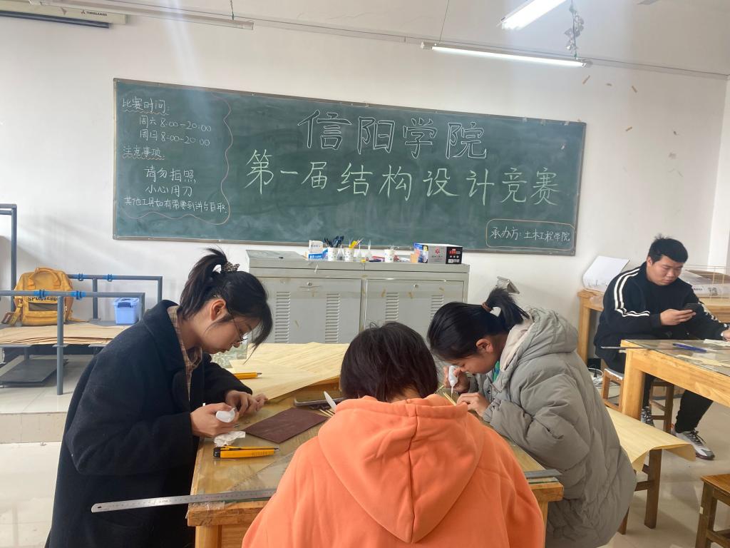 模型制作期间,同学们争分夺秒,热情高涨,展现出自己最好的水平,竞赛历时24小时,经过现场模型制作、模型介绍和评委答辩和模型加载等综合评比,评选出特等奖1名、一等奖2名、二等奖4名、三等奖10名,单项奖“最佳结构分析奖”、“最佳制作奖”各一名。最终8位同学入围即将在郑州大学举办的河南省第十届大学生结构设计竞赛。