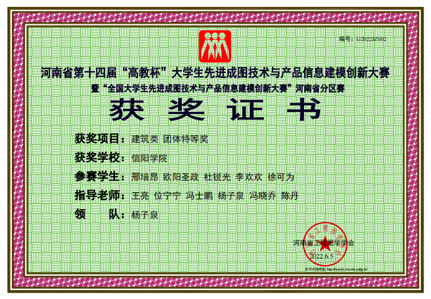 我校土木工程学院师生在河南省第十四届“高教杯”大学生先进成图技术与产品信息建模创新大赛中喜获佳绩