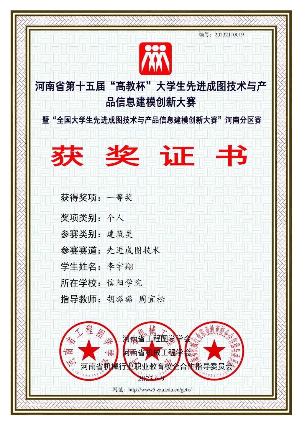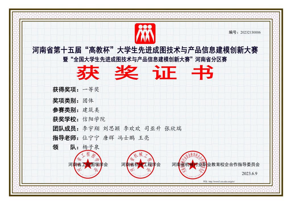 近日,由河南省工程图学学会主办、郑州大学承办的河南省第十五届“高教杯”大学生先进成图技术与产品信息建模创新大赛(暨“全国大学生先进成图技术与产品信息建模创新大赛”河南省分区赛)成绩揭晓,我校土木工程学院代表队荣获建筑类团体一等奖1项、建筑类个人全能一等奖1项、个人全能二等奖7项、个人全能三等奖10项,指导教师获优秀指导教师一等奖2项,二等奖6项。
