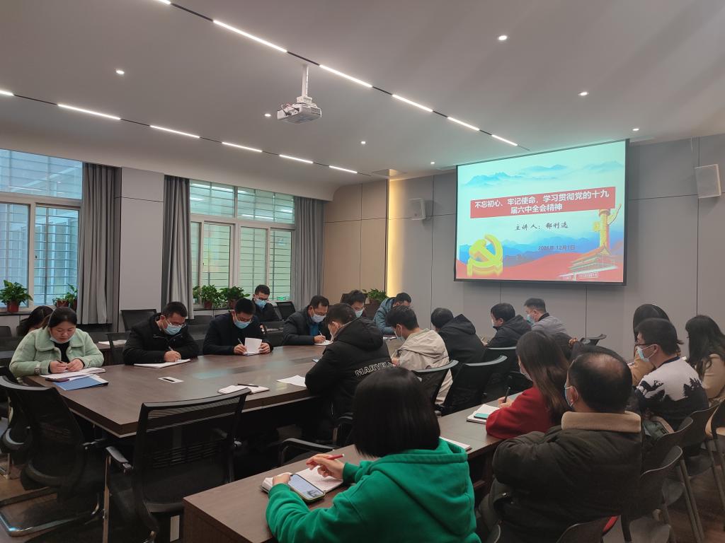 郗书记以《不忘初心、牢记使命,学习贯彻党的十九届六中全会精神》为党课主题,围绕“党的十九届六中全会”内容分三个方面展开讲述:一是全会召开的重大意义;二是中国共产党百年奋斗取得的重大成就;三是坚定理想信念、不忘初心使命,用实际行动贯彻落实党的十九届六中全会精神。