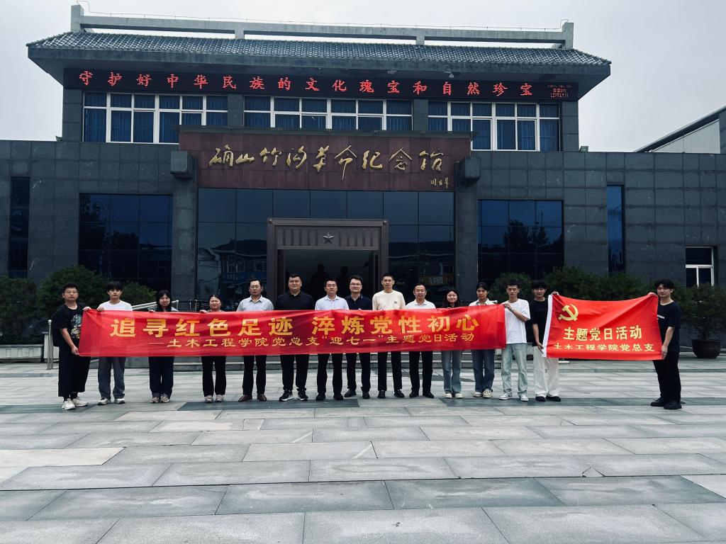 为庆祝中国共产党成立104周年,在“七一”建党节来临之际,6月26日,土木工程学院党总支书记徐远东、教学副院长杨子泉、总支各委员、各支部书记代表、学生党员代表前往杨靖宇将军纪念馆和确山竹沟革命纪念馆,开展了“追寻红色足迹 淬炼党性初心”主题党日活动,接受红色洗礼,传承革命精神。