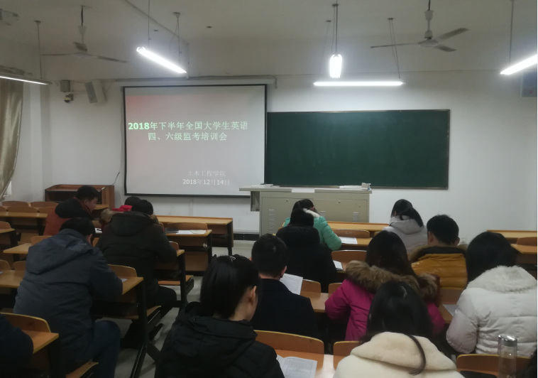 12月14日下午,土木工程学院在理工楼305教室召开2018年下半年全国大学英语四、六级监考培训会。土木工程学院全体监考教师参加了培训会。