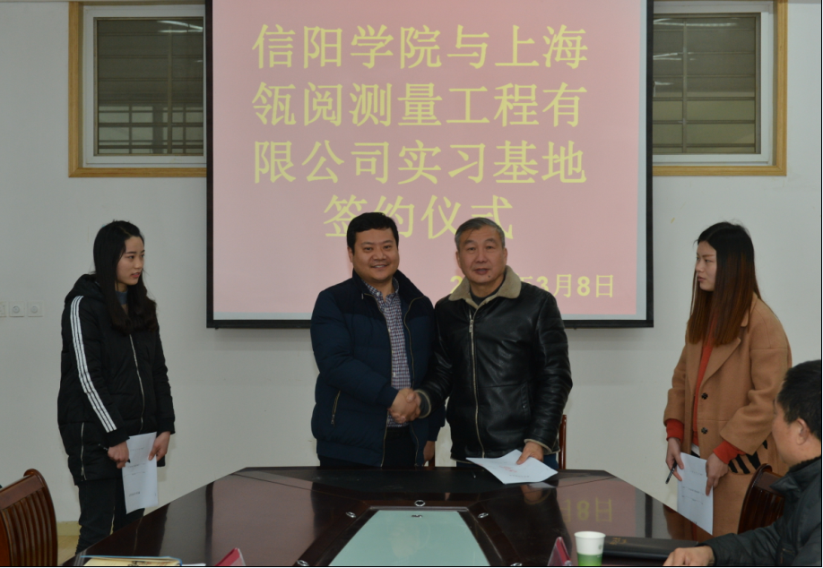 3月8日上午,我校土木工程学院与上海瓴阅测量工程有限公司及上海澄域环保工程有限公司校企合作签约仪式在理工楼会议室举行,该公司总经理孟军、副经理陆强博士、我校教务处张敬生、学院院长王钢城、院党总支书记潘卫国及师生代表参加了签约仪式,仪式由潘卫国主持。