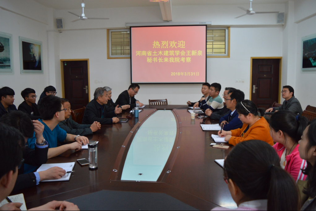 3月31日下午,河南省土木建筑学会秘书长王新泉教授来我院考察,受到了院长王钢城及该院师生的热情接待,并在理工楼2楼会议室举行了交流座谈会。