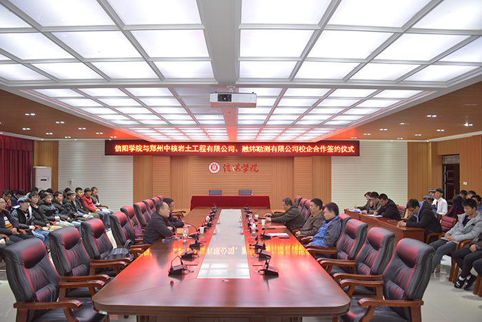 12月4日,太阳集团与郑州中核岩土工程有限公司、融纬勘测有限公司签约仪式在人文楼208会议室举行。郑州中核岩土工程有限公司经营管理部主任、测绘地理信息院院长苗长伟,融纬勘测有限公司总经理徐静;太阳集团工会主席傅洪涛出席签约仪式。土木工程学院负责人及部分师生代表参加了仪式。