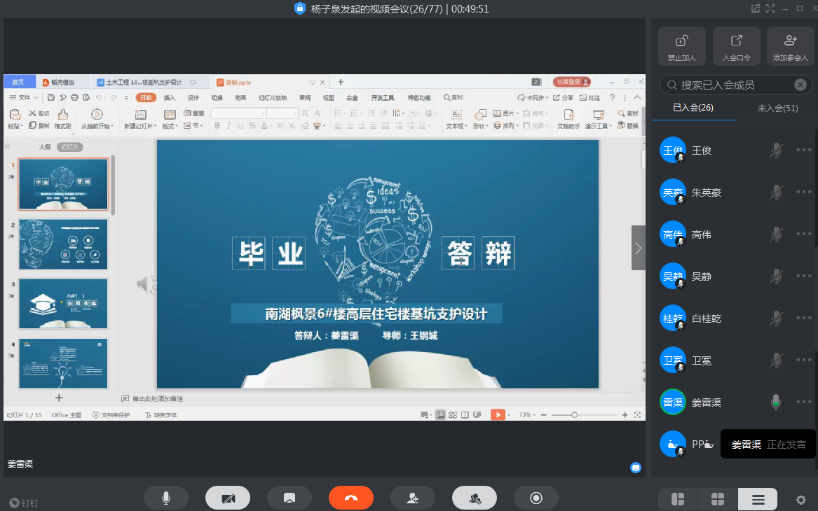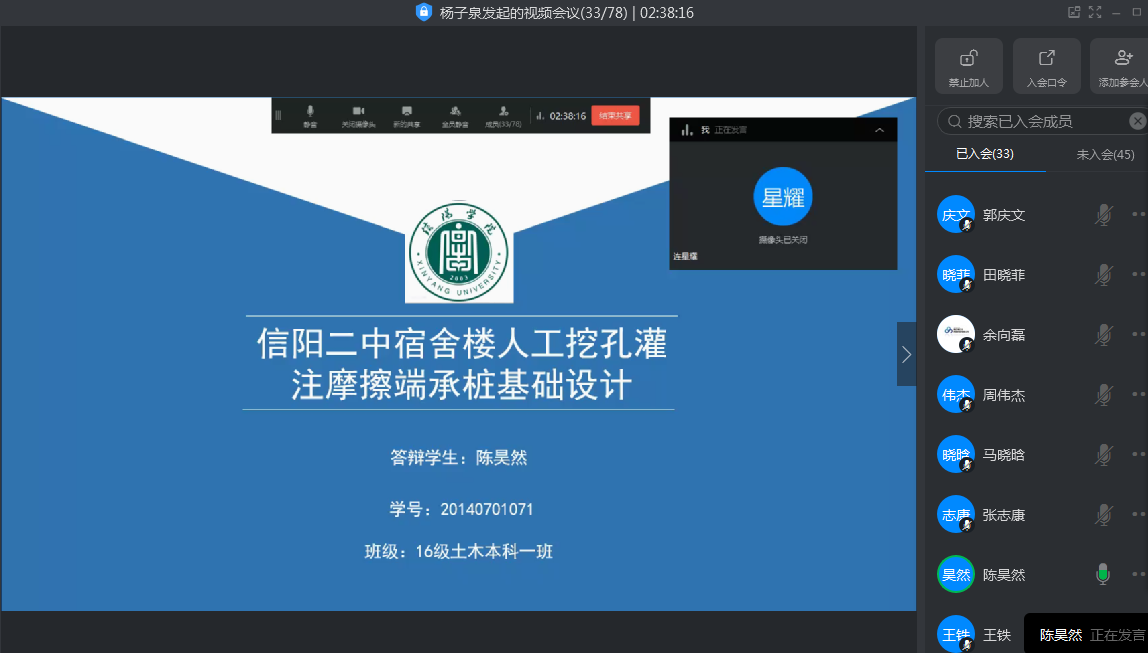 4月27日至5月8日,土木工程学院土木工程专业的139名2020届大四学生进行了网上在线论文答辩。为了使这次线上毕业答辩顺利进行,建筑工程教研室专门定制了《土木工程专业2020届本科毕业论文(设计)线上答辩工作安排》,本次答辩共分两组6批次全部采用钉钉视频会议进行。