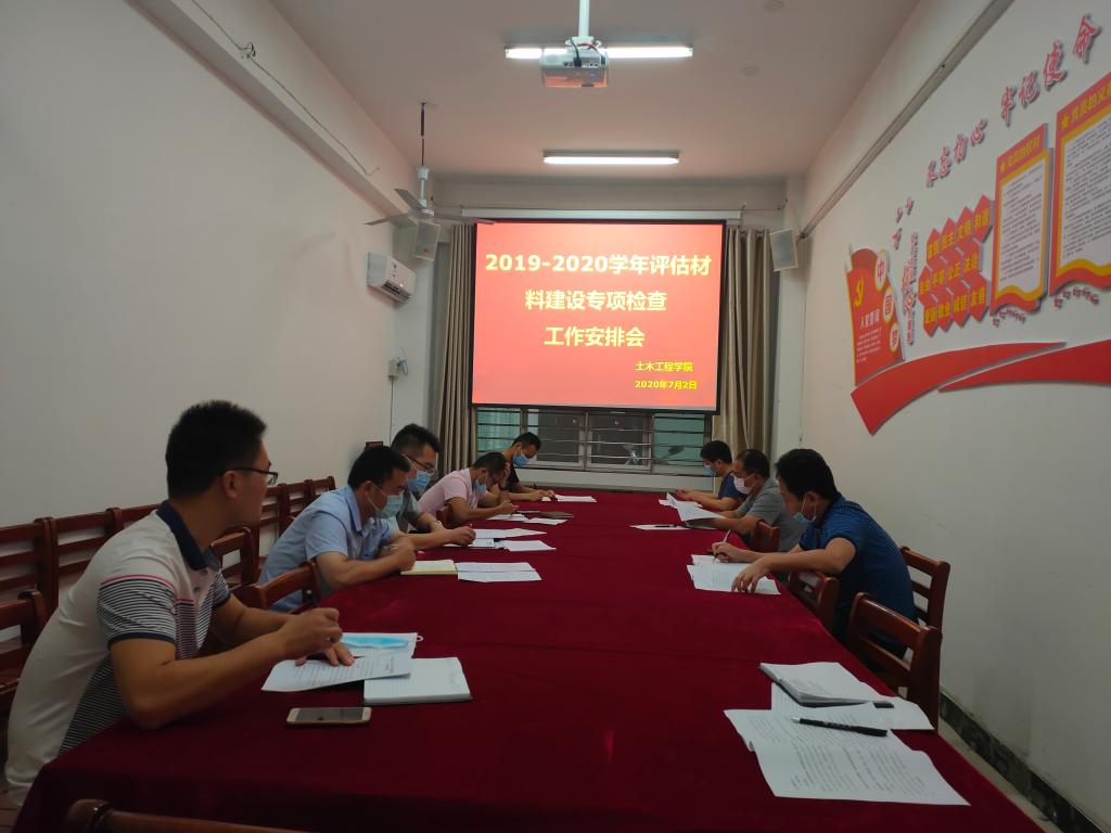 7月2日下午,土木工程学院在理工楼112会议室召开评估材料准备安排会。名誉院长、副院长兼党总支书记潘卫国、行政秘书郗利选、教学干事王亮、学工干事徐超及各教研室主任参加了会议。
