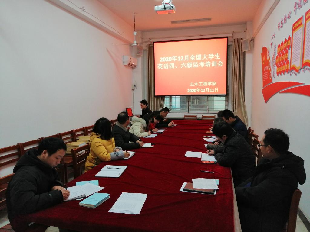 12月11日下午,土木工程学院在理工楼112会议室召开2020年12月全国大学英语四、六级监考培训会,教学干事王亮及全体有监考任务的教师参加了培训会。