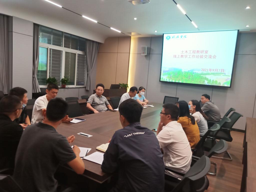 为落实学校疫情防控要求和新学期初线上教学工作安排,保证学院教师能够保质保量完成线上教学任务,9月7日下午,土木工程教研室在理工楼112会议室召开了以“线上教学工作经验交流”为主题的教研活动,土木工程学院名誉院长、教学副院长杨子泉和教研室全体教师参加了此次活动,会议由教研室主任付善春主持,采用线上线下相结合的形式开展,由于疫情防控要求未到校的特聘教授和新进教师采用腾讯会议线上参会,教研室成员针对近期线上教学工作情况进行了总结交流。