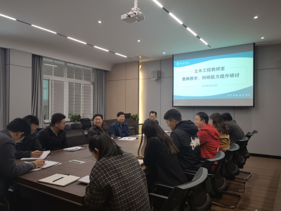 为进一步提高教研室的教学及科研能力,2022年3月10日,土木工程教研室在理工楼112会议室召开了教师教学、科研能力提升研讨会。学校专职督导吴锐教授,土木工程学院教学副院长杨子泉,兼职督导王国际教授,工程造价教研室王玉静老师及土木工程教研室全体教师参加了会议,会议由教研室主任付善春主持。