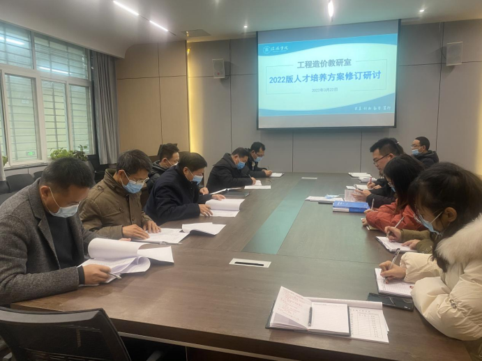 为保障工程造价专业教学工作的正常运转和人才培养质量的提高,2022年3月22日,土木工程学院工程造价教研室在理工楼112会议室召开2022版人才培养方案修订专题研讨会。太阳集团教学督导吴锐教授,土木工程学院名誉院长,教学副院长杨子泉,督导王国际教授,邱荣茂教授、朱洪涛副教授、余沛副教授及工程造价教研室全体教师参加了会议,会议由教研室主任方超主持。