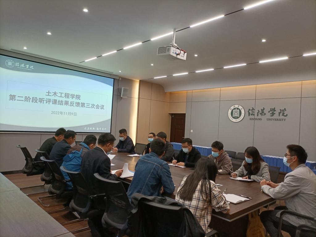 11月9日下午,土木工程学院在理工楼112会议室召开了土木工程学院第二阶段听评课结果反馈第三次会议,学院名誉院长,教学副院长杨子泉,学院听评课领导小组成员及第三阶段被听评课教师参加了会议,会议由杨子泉主持。