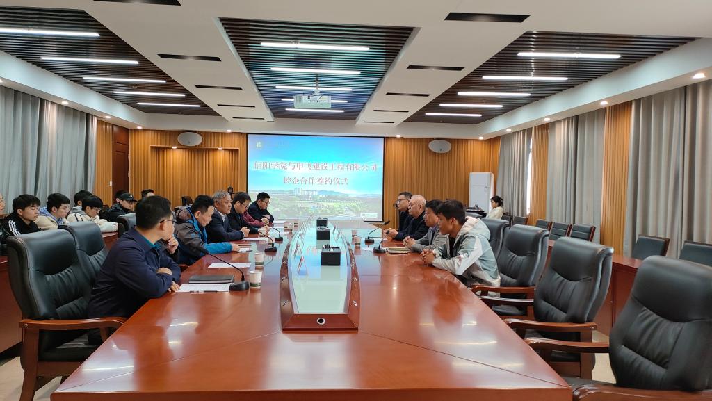 王强致欢迎辞,对申飞建设工程有限公司各位来宾表示热烈欢迎,并简要介绍了学校的发展历程、办学成果及新校区建设。他指出,土木工程学院通过与名校湖北工业大学联合办学,取得了突出成果,希望双方在学生就业、人才培养、硕士学位立项建设等方面深入合作,创新产学研融合方式,实现优势互补、资源共享、互惠互利、共同发展。