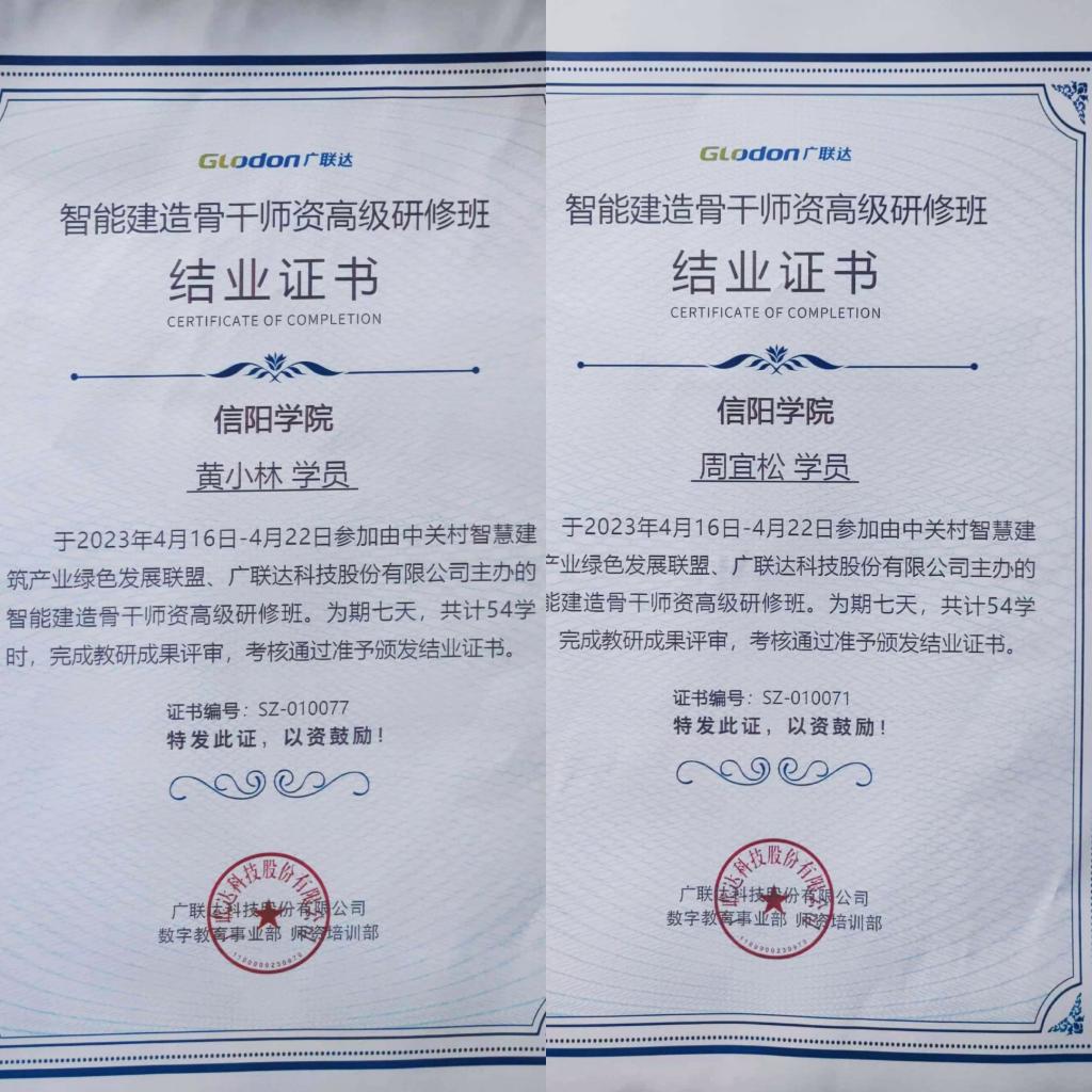 4月16日-22日,土木工程学院高级工程师黄小林与青年教师周宜松参加了“智能建造骨干师资”高级研修班。本次高级研修班由中关村智慧建筑产业绿色发展联盟与广联达科技股份有限公司共同主办,黄河交通学院承办。