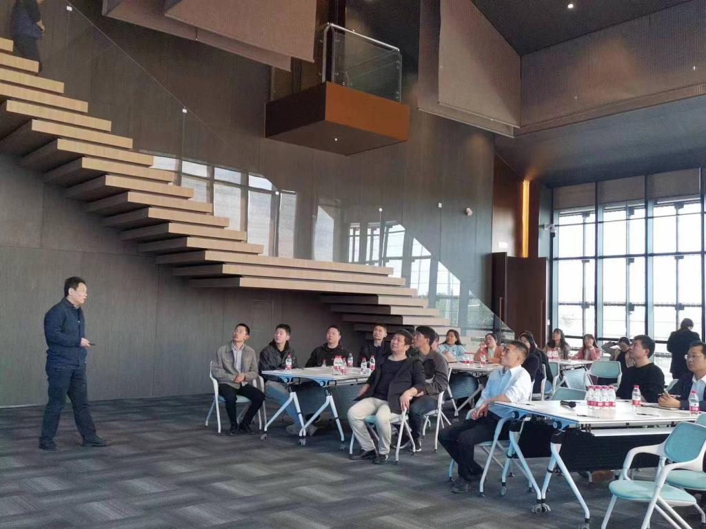 参观结束后,名誉院长做了《装配式建筑关键技术研究》的学术报告。他从“装配式建筑是什么、装配式建筑的关键”切入,分别从装配式建筑国内外的发展背景、装配式建筑的优势等引入,重点介绍了陶粒混凝土装配式复合墙体系这一创新技术的应用并展示相关的课题成果。