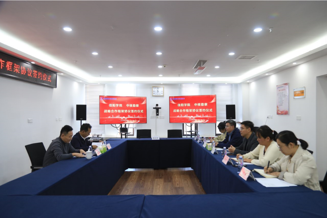 11月6日上午,我校土木工程学院与中核勘察设计研究院有限公司在郑州举行了战略合作框架协议签订仪式。中核勘察设计研究院有限公司副总经理张宇、办公室副主任陈晓飞、工程技术研究中心主任王俊卿、工程技术研究中心党支部书记、副主任刘琳,土木工程学院名誉院长、教学副院长杨子泉参加了签约仪式。仪式由张宇主持。