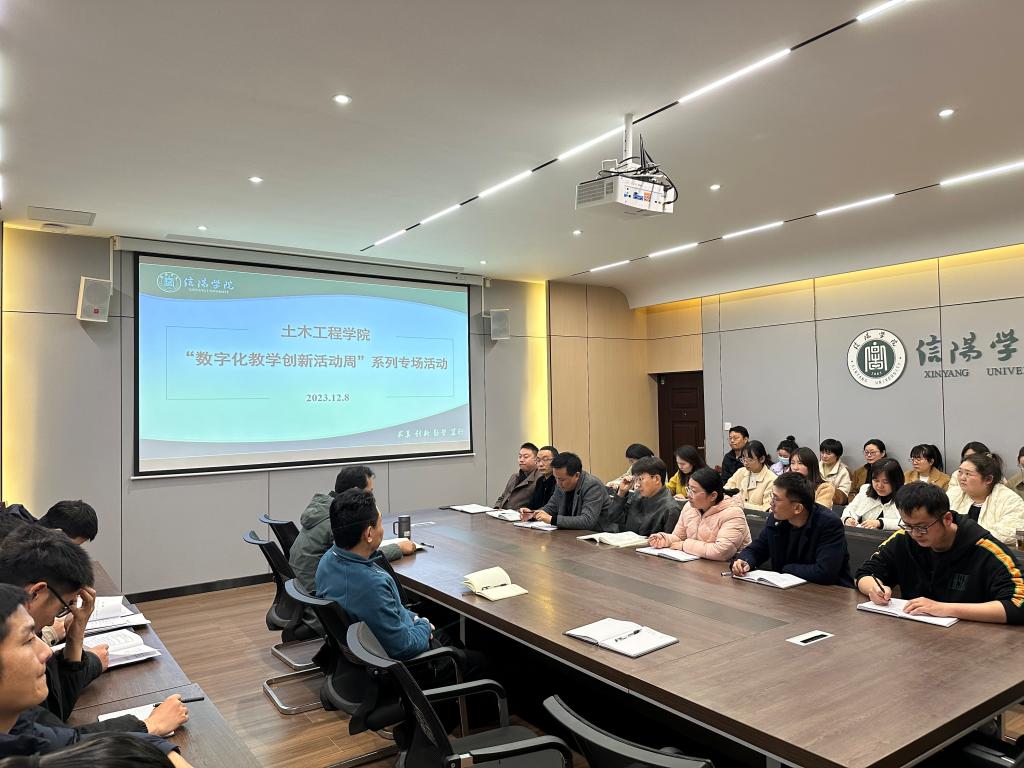 为进一步提升教师信息技术与学科的深度应用与融合创新,推动数字化学习研究活动的深入开展,12月8日,土木工程学院在理工楼112会议室举行“数字化教学活动周”系列专场活动。名誉院长、教学副院长杨子泉、教学干事王亮及全体任课教师参加了会议,会议由王亮主持。