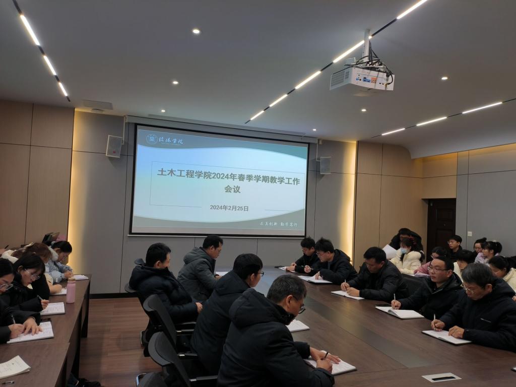 2月25日下午,土木工程学院在理工楼112会议室召开了2024年春季学期教学工作会议,学院领导班子以及全体教师参加了会议,会议由党总支书记郭二军主持。