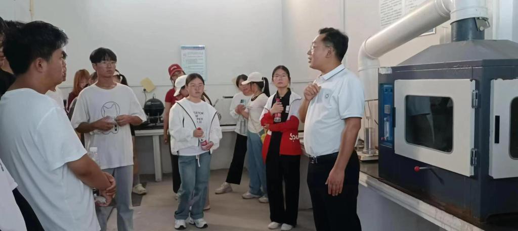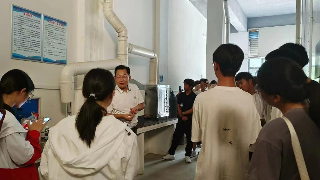 在参观实验室过程中,企业实验室负责人员为学生们详细介绍实验室中各个仪器的使用方法,以及实验室中出现材料的名称和用途,学生们对实验仪器的使用和建筑工程材料有了更加直观的认识。