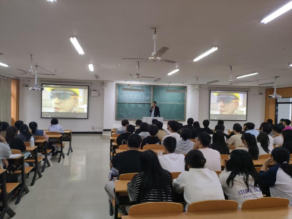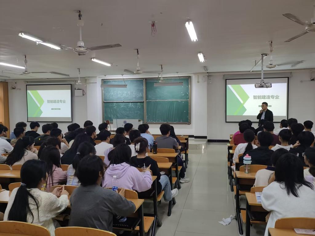 黄小林老师首先对2024级新同学的加入表示了热烈的欢迎,并介绍了到场的专业课教师。他详细介绍了学院近年来取得的成就,并展示了智能建造领域的最新成果,使同学们对专业前沿有了更深入的认识。黄老师还从专业背景、课程设置、专业发展、就业前景等多个角度,对智能建造专业进行了全面而深入的介绍,并结合国家政策,对行业人才需求进行了全面的解读和展望。