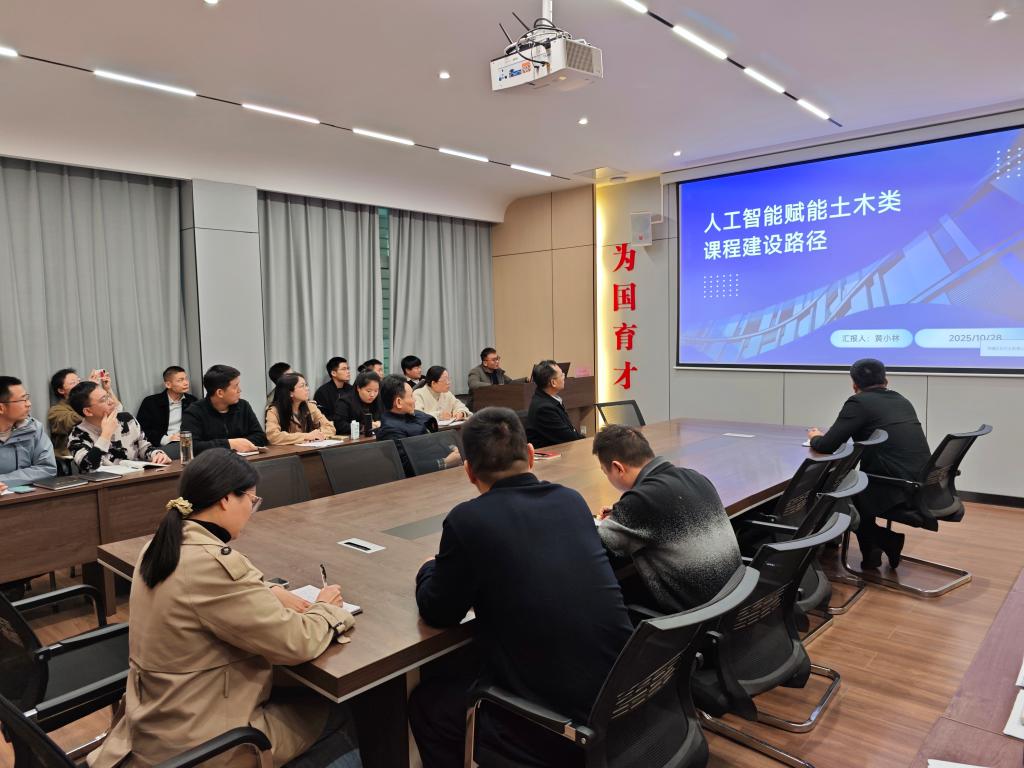 本次培训由高级工程师黄小林老师主讲,他结合国家政策导向与行业发展趋势,系统阐述了AI技术在土木类专业教学改革中的应用路径。与会老师围绕“人工智能赋能土木类课程建设路径”展开深入探讨。