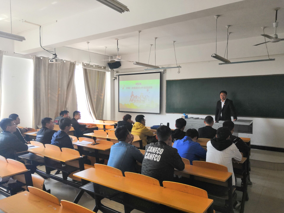 3月25中午13:00,中国二治集团有限公司在理工楼405教室举办了专场招聘会。中国二治集团有限公司人事部负责人尹旭,土木工程学院团总支书记吴琼茹及40余名大四毕业生参与了本次招聘会。