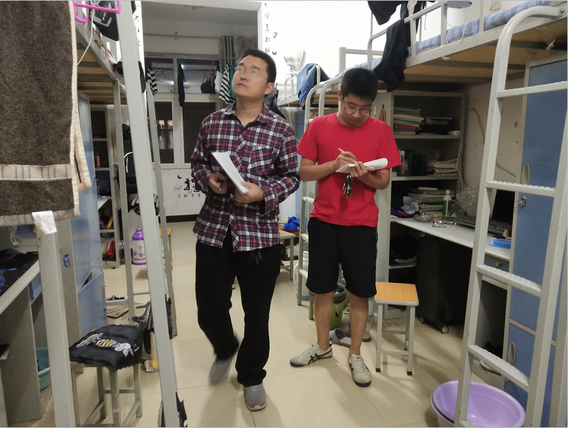 在检查前,徐超老师对大家讲述了此次检查的意义,并要求所有检查人员做到大公无私,所有寝室都要检查到,然后对检查人员进行了分组进入寝室进行检查。