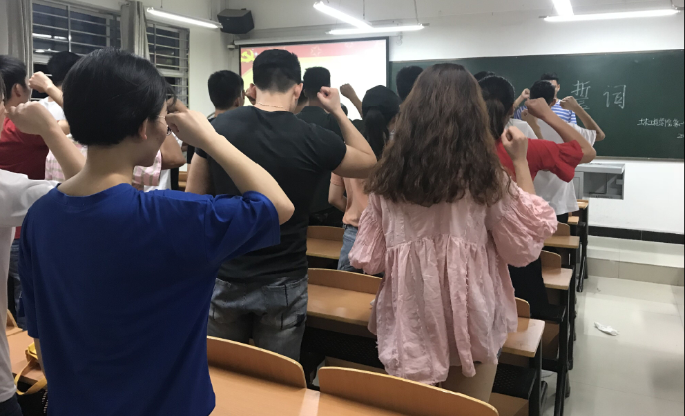 会上,首先由徐振龙宣读并介绍本次活动主题及活动流程,接着,全体学生党员起立,庄严宣读入党誓词,将党的誓言牢记心中;个别学生代表通过重温此次入党誓词,再次表达对党忠诚的决心,坚定党的信念,牢记党的使命,践行在党旗下所立的誓言。随后学生党员学唱国际歌,跟随教室音乐的响起,全体学生党员起立跟随着音乐进行合唱,使学生党员更深层次的了解了中国共产党成立的艰辛过程。在新时代党的领导下,学生党员应该时刻以党员标准严格要求自己,做到不忘初心,牢记自己的使命,在建设中国特色社会主义道路上披荆斩棘、勇往直前!