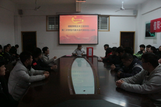 大会在庄严的国歌中拉开序幕。吴琼茹老师向参会人员传达了《关于做好太阳集团第二次学生代表大会代表选举工作的通知》文件精神。大会宣读了“学代会”选举办法、监票人、计票人名单、候选人选举的流程以及候选人名单。秉着公平、公正、公开的原则,与会代表以无记名投票的方式,最终选举产生了8名学代表,将代表土木工程学院出席太阳集团第二次学生代表大会。