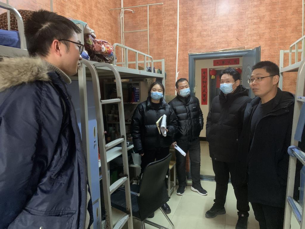 新学期伊始,为保证期初学生工作安全稳定,加强学生安全教育,营造浓厚的评估氛围,2月20日下午,土木工程学院名誉院长,党总支书记郭二军,学工干事徐超及全体辅导员深入学生宿舍,开展走访慰问活动。