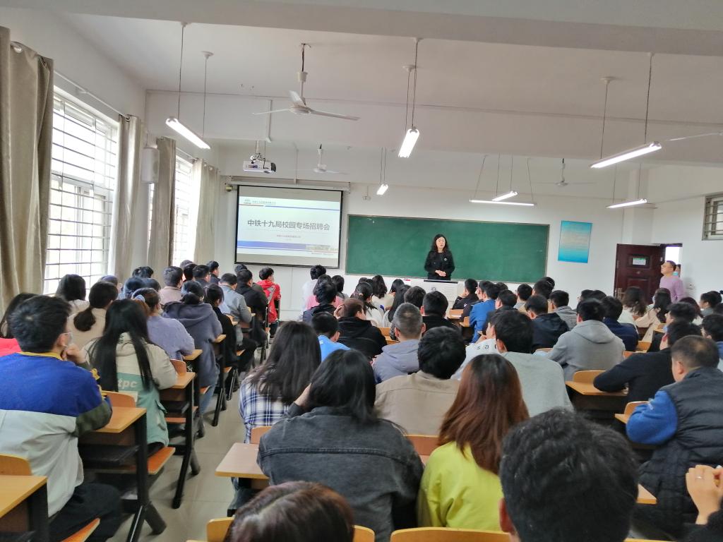 为了更好地拓宽2022届毕业生就业渠道,促进毕业生充分就业。3月11日上午,中铁十九局集团第五工程有限公司专场招聘会在理工楼507教室举行。土木工程学院学工干事徐超,辅导员蔡大海、杨柳及120余名土木工程学院、商学院的毕业生参加了此次招聘会。