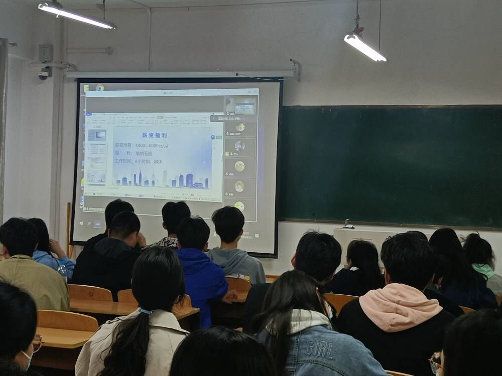 招聘会上,河南全优建筑有限公司招聘负责人周经理就公司简介、承接的项目、岗位需求及福利待遇等几个方面详细地向同学们作了介绍,同时介绍了公司的优势。随后与同学们进行了线上互动,解答了同学们关于应聘方面的问题。会后,同学们踊跃投简历应聘该公司。