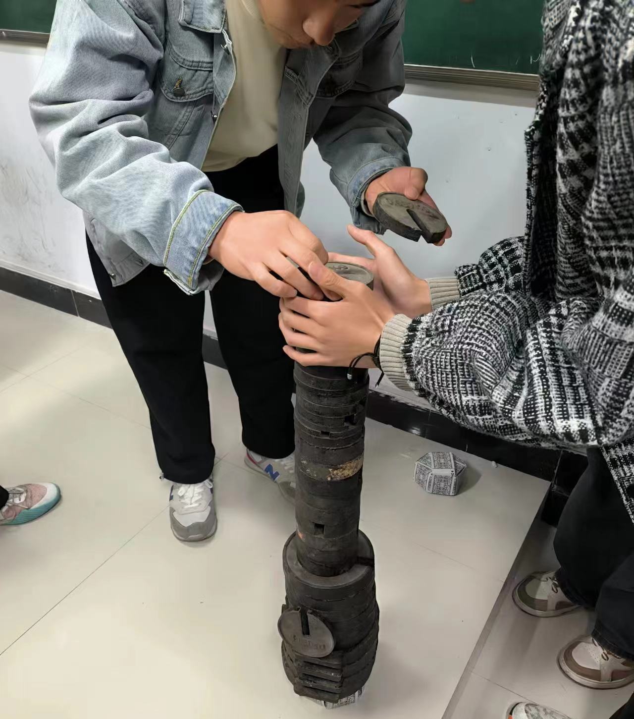 比赛过程中,同学们积极尝试构想的搭建方式,在不断的“倒塌”后逐渐定型,大家展开讨论,现场氛围十分热烈,参赛小组通力协作很快完成模型堆叠。