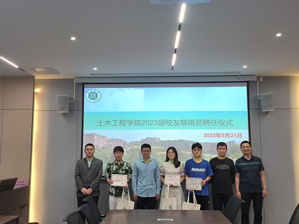 为进一步做好校友与母校之间的联络,构筑良好的沟通平台,5月31日上午,土木工程学院在理工楼112会议室举行2023届校友联络员聘任仪式,学院党总支书记郭二军、学工干事徐超、辅导员徐飞、李静、甄祺及3位校友联络员参加了聘任仪式。仪式由徐超主持。