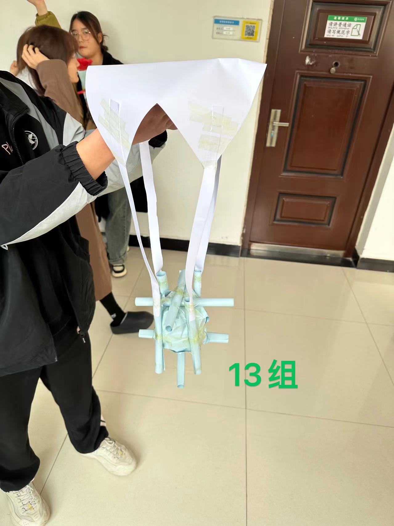 本次比赛要求以建筑结构知识为基础充分发挥想象,以卡纸为基本材料设计结构模型,能够将鸡蛋放置模型内部,方法不限。比赛开始后,各组选手构思模型,分工合作。各组负责人对参赛模型的设计灵感、结构特色、基本情况进行简单的描述。随后,将装有鸡蛋的模型依次从距地面高8米处自由落下。
