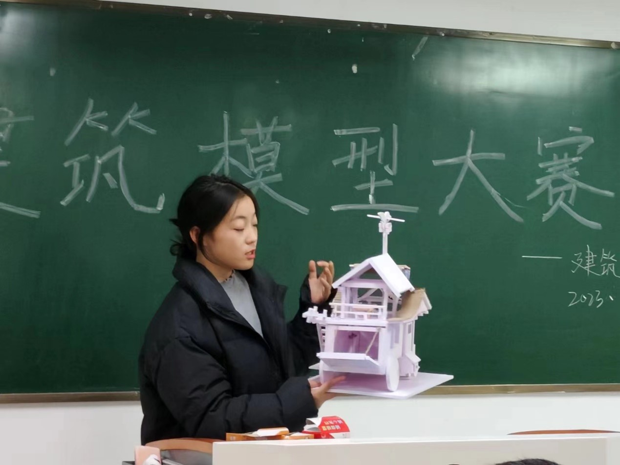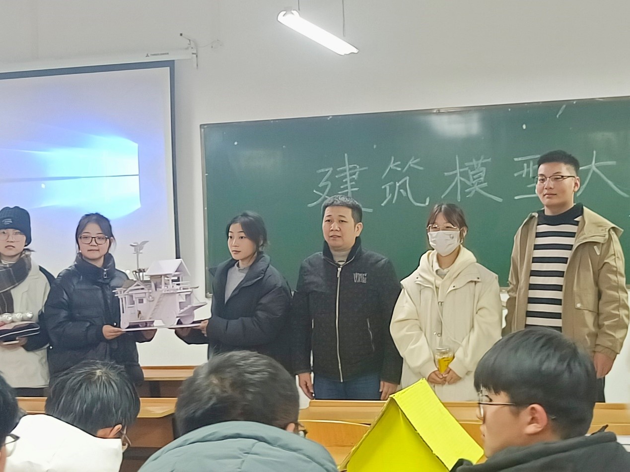 为全方面培养大学生的创新思维和实践动手能力,提升大学生工程结构设计创新思维,12月1日下午,土木工程学院建筑艺术学社在理工楼402教室举行了第十七届建筑模型设计大赛决赛。本次大赛邀请土木工程学院团总支书记徐飞、建筑爱好者协会指导教师王冬冬、教师赵航、李士瑞、尹海峰莅临现场指导,建筑艺术学社全体成员及优秀作品组员参加。