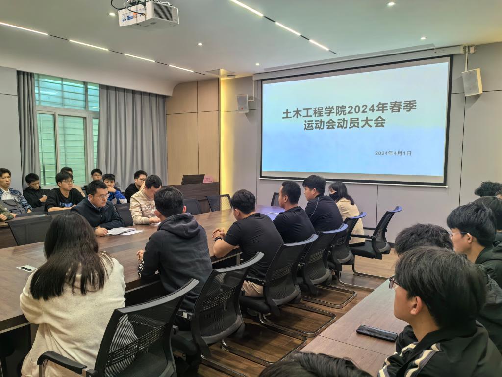 为提升学生运动意识及体质健康水平,丰富校园体育文化生活,4月1日下午,土木工程学院在理工楼112会议室召开了学院2024年春季运动会动员大会。学院学工干事徐超、团总支书记徐飞及各班班长、体育委员参加了此次会议。会议由徐超主持。