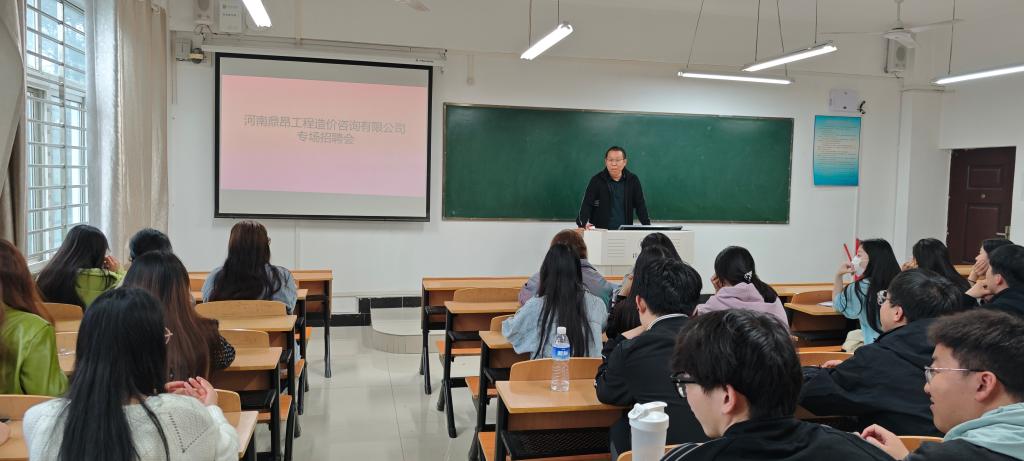 为了更好地促进学生就业,拓宽毕业生就业渠道,4月2日下午,河南鼎昂工程造价咨询有限公司专场招聘会在理工楼408教室举行。河南鼎昂工程造价咨询有限公司总经理陈万强及20余名工程造价专业毕业生参加了此次招聘会。此次招聘会由余根老师主持。