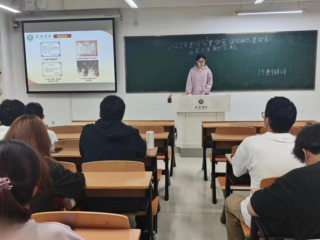 国家奖学金获得者闵一楠同学积极与同学们分享自己的学习经验与学习心得,鼓励同学们在学好专业课的同时,也要积极投身于校园实践和社会志愿服务活动之中,争做“有目标、有信念、有温情”的当代大学生。