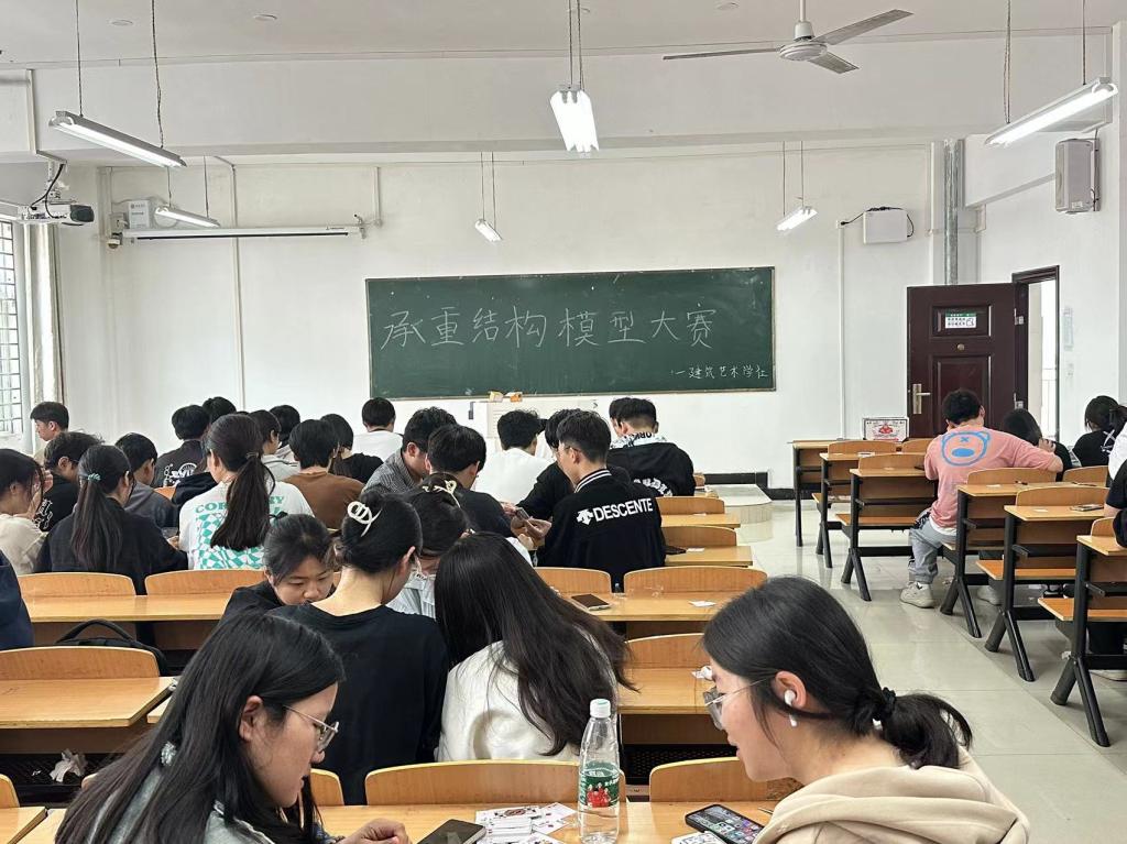 为激发学生的想象力,锻炼学生的动手能力,4月20日,土木工程学院建筑艺术学社在理工楼401、402教室成功举办了承重结构设计大赛。土木工程学院教师王冬冬、邱新生及建筑艺术学社100余名学生参加了此次大赛。
