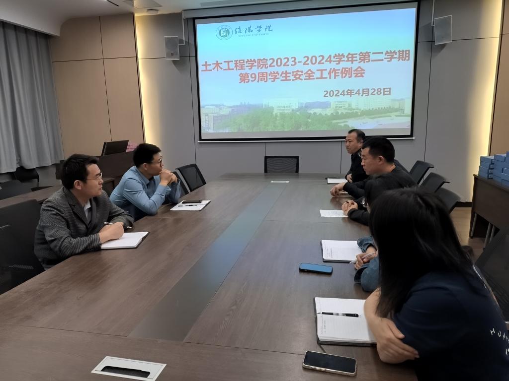 为做好学生安全教育工作,4月28日下午,土木工程学院在理工楼112会议室召开了第九周学生安全教育工作研判会。学院党总支书记郭二军、学工干事徐超及全体辅导员参加了此次会议。