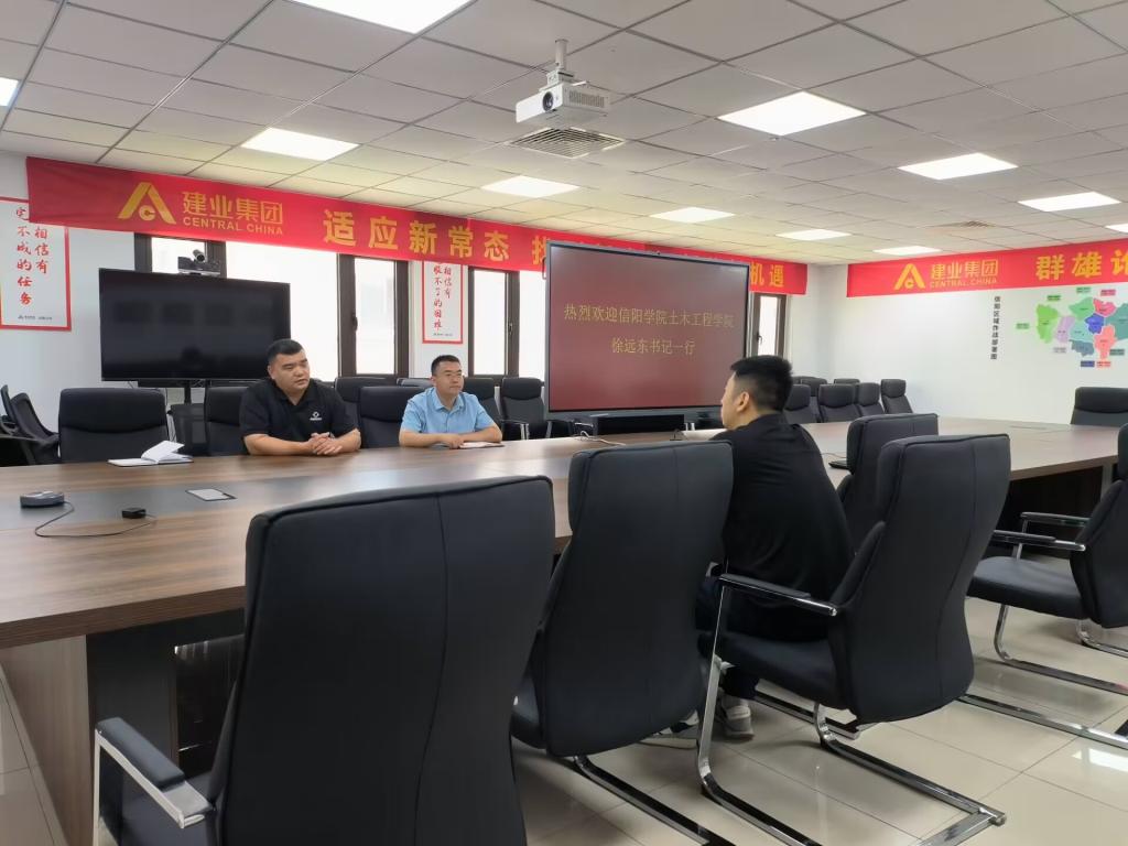 访企拓岗促就业,校企合作共发展,6月19日,土木工程学院党总支书记徐远东、学工干事徐超、毕业班辅导员徐飞一行赴信阳建业集团进行了实地走访,受到了信阳建业集团总经理杜经理的热情接待。