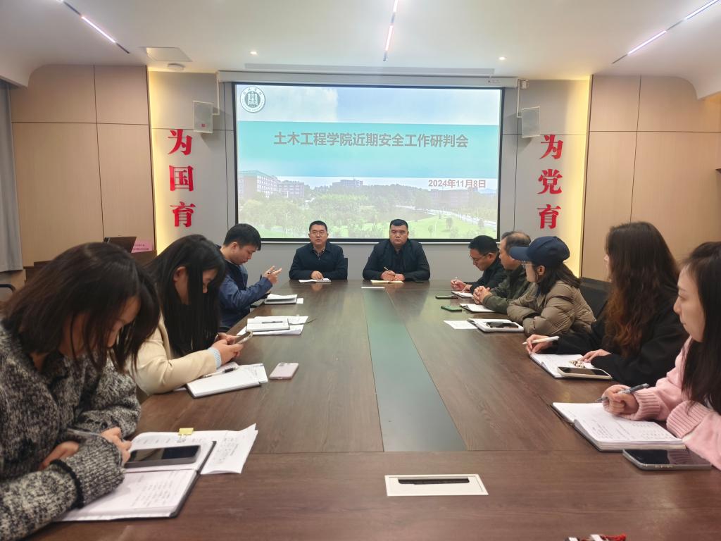 为积极落实学校安全会议精神,11月8日上午,土木工程学院在理工楼112会议室召开了近期学生安全工作研判会,学院党总支书记徐远东、学工干事徐超及全体辅导员参加了会议。
