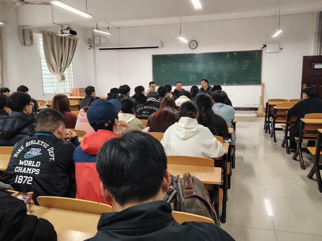 为提升学生运动意识及体质健康水平,丰富校园体育文化生活,3月11日下午,土木工程学院在理工楼302教室召开了学院2025年春季运动会动员大会。学院学工干事徐超、团总支书记徐飞、田径项目负责人刘泰虎及各班班长、体育委员、学生会干部参加了此次会议。会议由徐超主持。