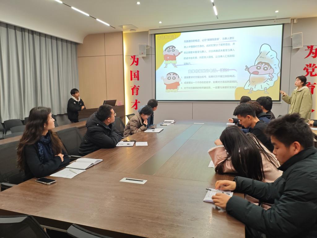为增强同学们的安全意识,提升反诈防骗能力,谨防被骗,3月12日晚,土木工程学院在理工楼112会议室举办了“平安信院,反诈有我”校园反诈防骗演讲比赛,学院学工干事徐超、团总支书记徐飞,辅导员秦怡博、朱徐迪及进入复赛的10名选手参与了此次比赛。