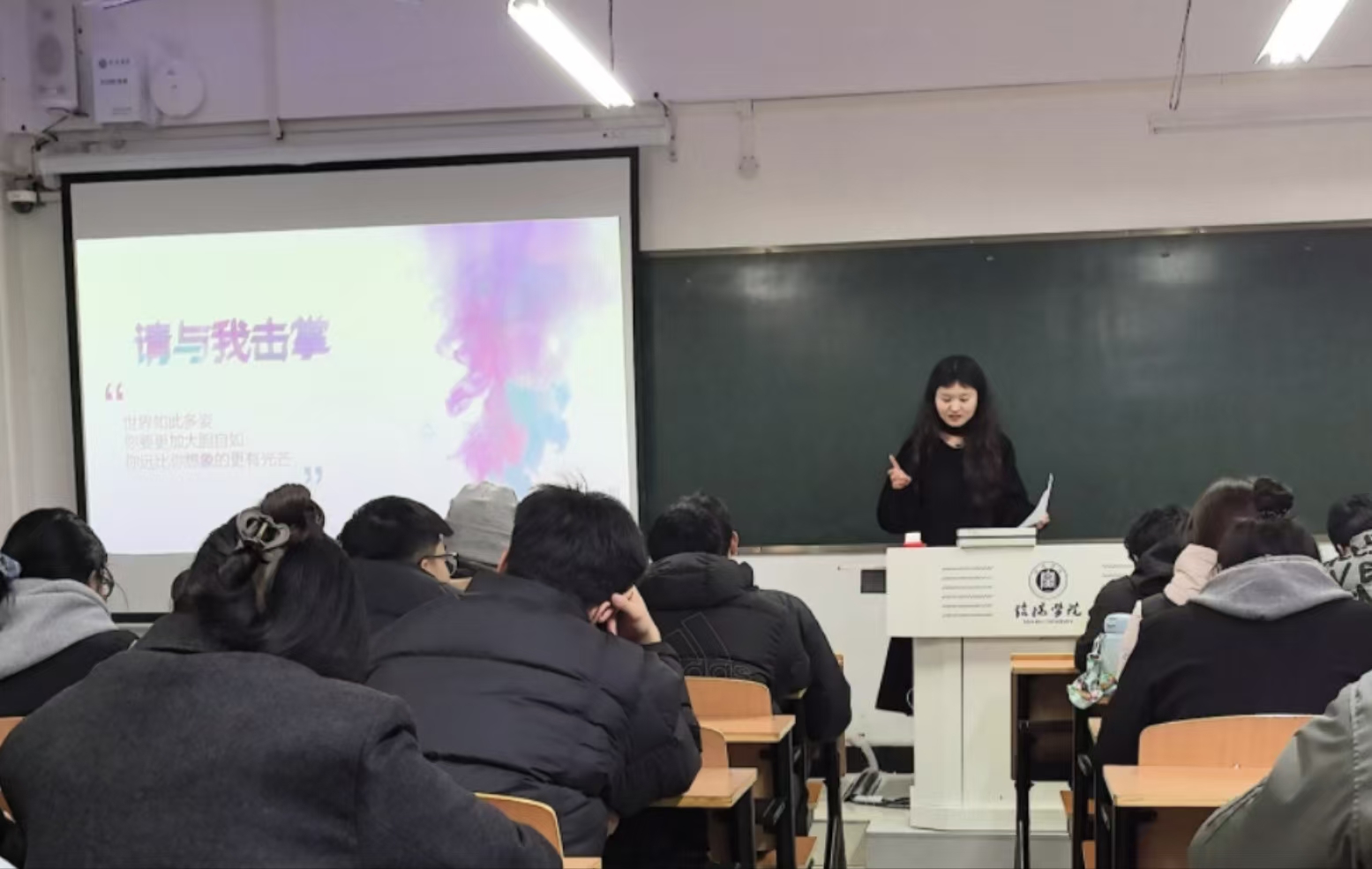 为促进学生心理健康发展,丰富班级文化氛围和学生情感体验,土木工程学院于2025年3月14日于理工楼410教室开展了主题为“请与我击掌”班级心理团辅活动。本次活动由辅导员朱徐迪主持,突破传统心理教育模式,以“手绘掌印”为载体,用最质朴的艺术形式架起心与心的桥梁,让学生在方寸画纸间完成了一次独特的情感对话。