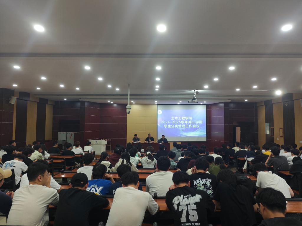 为强化学生干部素质,进一步夯实学生公寓安全网格化管理工作实效,4月9日,土木工程学院在图书馆102报告厅召开了2024-2025学年第二学期学生公寓管理工作会议。学院党总支书记徐远东、学工干事徐超、全体辅导员及寝室长参加了此次会议。会议由徐飞主持。