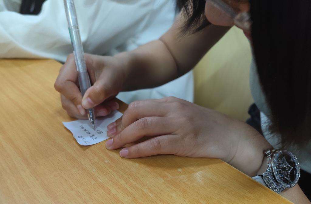 在“秘密天使任务”环节将温情推向高潮。每位同学随机抽取一名“守护对象”,通过匿名便签写下对TA的观察与鼓励。现场活动热烈,气氛活跃。随后,同学们分享个人感受,班级温度迅速攀升。陈曼怡表示,今天的升温不是终点,而是温暖相处的开始,希望未来每位同学都能成为班级的“恒温暖源”。