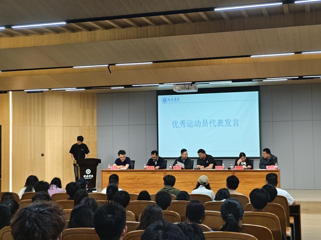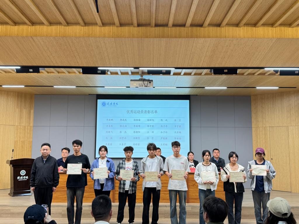 大会最后,全体师生共同观看了运动会赛场记录合辑视频,重温赛场上的激情瞬间。此次表彰大会是对先进个人的嘉奖,也是一次凝聚共识、振奋精神的动员会。学院将以此次表彰为契机,继续以体育为纽带,培育“体魄强健、意志如钢”的新时代青年,书写更多超越自我的青春故事,持续优化人才培养机制,积蓄力量,砥砺奋进。