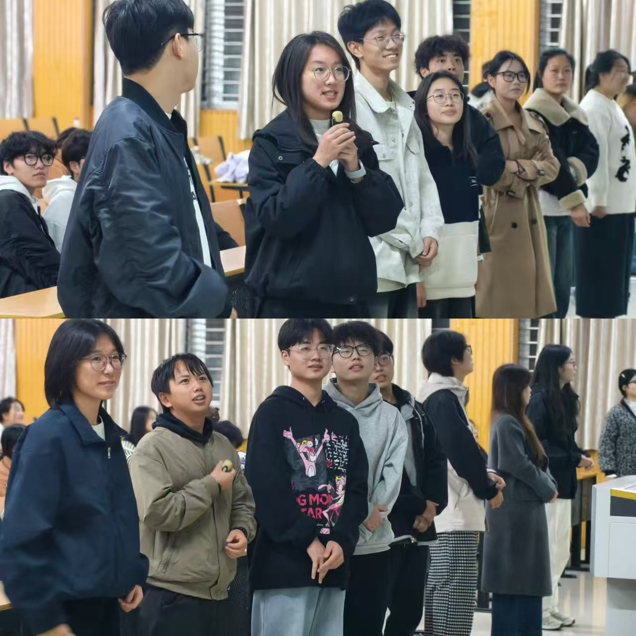 随后,在两位老师的引导下,65名学生干部自由组合分成八队,一场别开生面的“心理素质拓展”在欢声笑语中展开。“正话反说”环节考验了学生干部的瞬时反应与思维灵活性,紧张有趣的氛围迅速点燃了全场;“粤语猜词”游戏则别出心裁,在南北文化的小小碰撞中,极大地激发了大家的沟通热情与换位思考能力;“三词造句”要求团队在短时间内将毫不相干的词语串联成章,有效锻炼了逻辑整合与集体创造力;而“321请回答”的快速抢答,不仅比拼知识储备,更锤炼了大家在压力下的稳定心态。